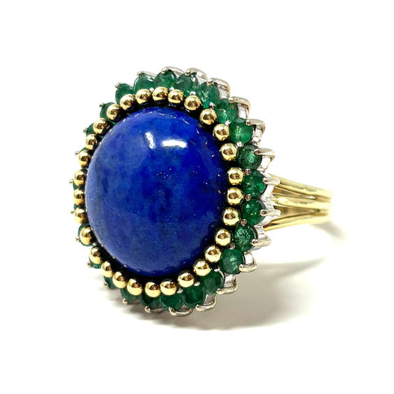 Estate 18K Gold Lapis Lazuli and Emerald Ring