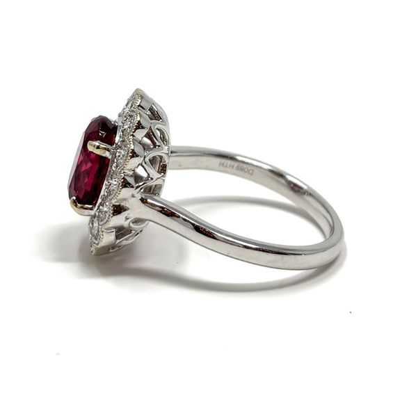 Estate 18K White Gold Rubellite Tourmaline and Diamond Ring