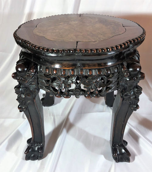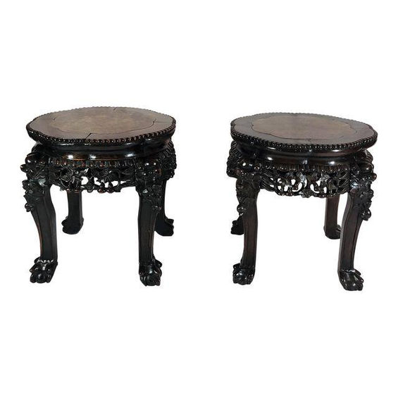 Pair Antique Carved Teak Stands with Marble Tops, Circa 1860-1870