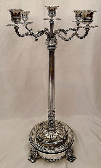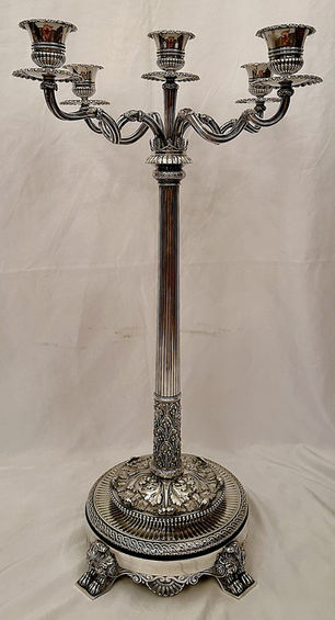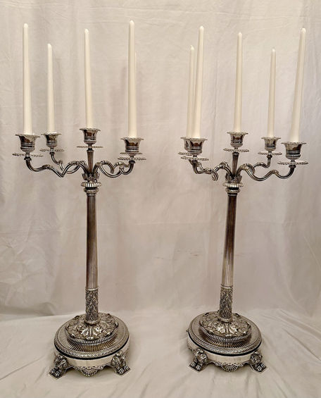 These magnificent candelabra were made by Hunt & Roskell of Bond Street, London. The firm held the Royal Warrant to Queen Victoria and was Successor to Paul Storr & Rundell, Bridge & Rundell.