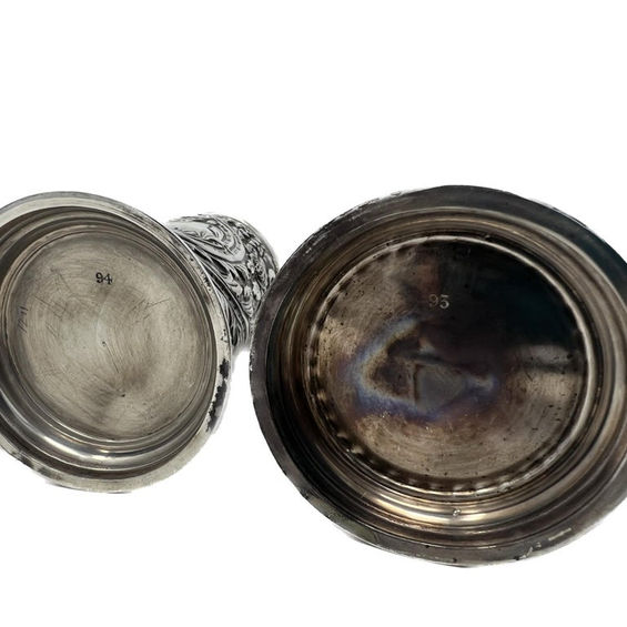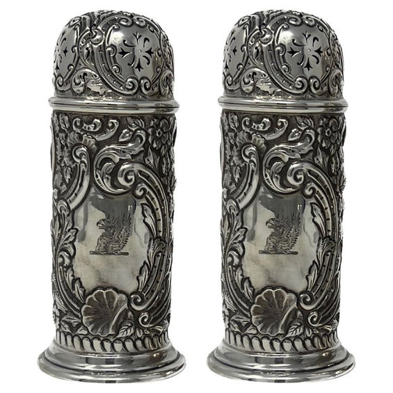 Pair Antique English Sterling Silver Muffineers /Salt & Pepper Shakers