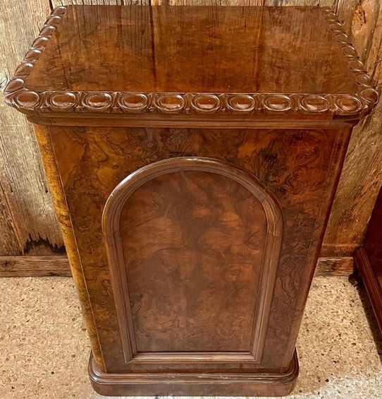 Pair Antique English Victorian Burled Walnut Side Tables, Circa 1870