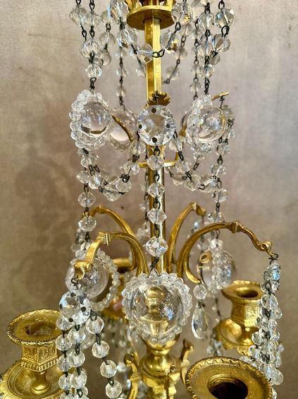 Pair Antique French Baccarat Crystal & Bronze D'Ore Girondoles, Circa 1880.
