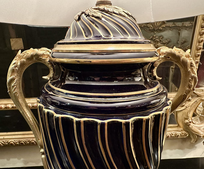 Pair Antique French Cobalt Blue Porcelain Lamps with Ormolu Mounts, Circa 1900's