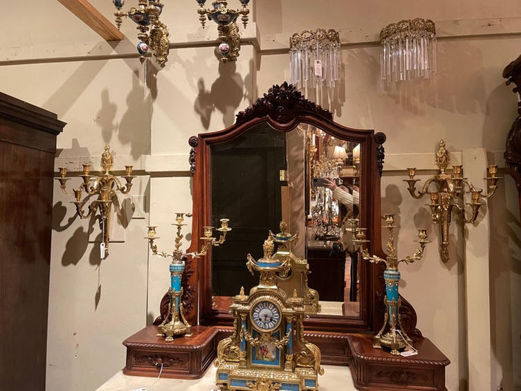 The design style known as Louis XVI dates to the reign of King Louis XVI of France (1774-1792). The style appeared in architecture, furniture, decoration and art and rejected the elaborate ornate curves and frilly embellishments of the preceding Baroque period. Louis XVI’s queen, Marie Antoinette, was instrumental in returning design focus to a style characterized by the elegance and of ancient Greek and Roman models, employing the use of ornate detail, precise shapes, light and refined color palettes, and symmetry. The royal apartments in the palaces of Versailles, Fontainebleau, Tuileries, as well as other royal residences contain outstanding examples of these beautiful designs. No expense was spared to create elegant, refined and expertly crafted wares produced by the master craftsmen of the period in this period just prior to the French Revolution.
