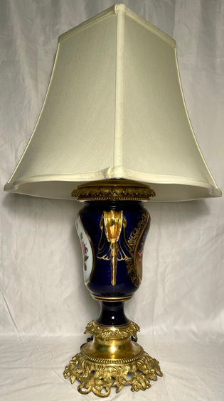Pair Antique French Old Paris Porcelain Cobalt Blue & Gold Lamps, Circa 1880