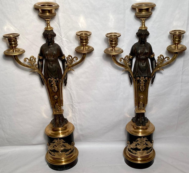 Pair Antique French Ormolu & Patinated Bronze Candelabra, Circa 1885