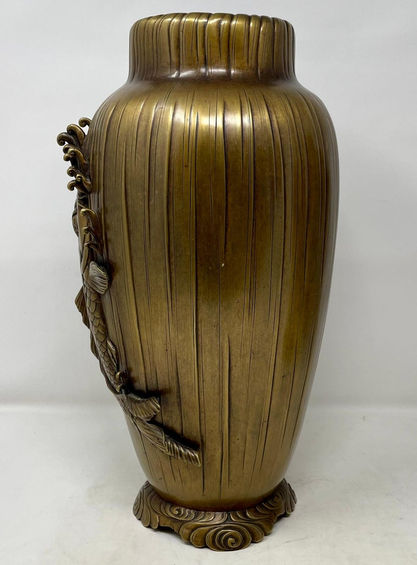 Pair Antique Japanese Bronze Urns with Fish, Circa 1890's-1900's.