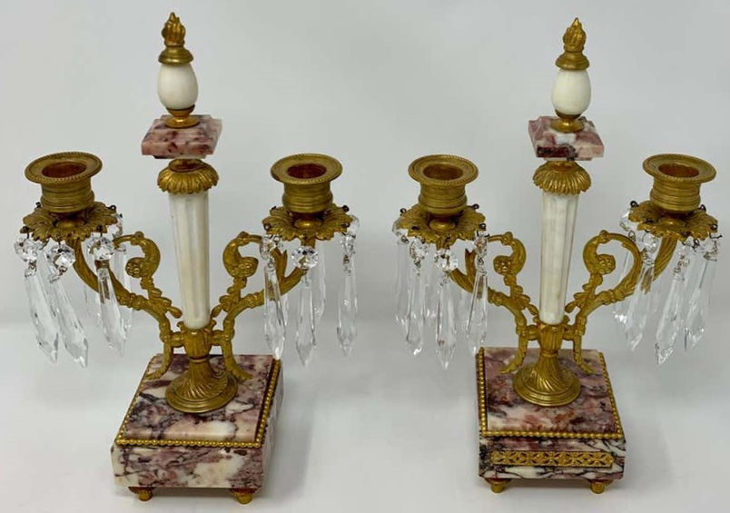 Pair Antique Marble and Crystal Candlesticks circa 1880-1890