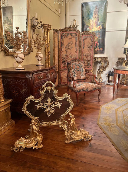 Pair of Antique French Bronze D'ore Andirons with Cherubs, Circa 1870