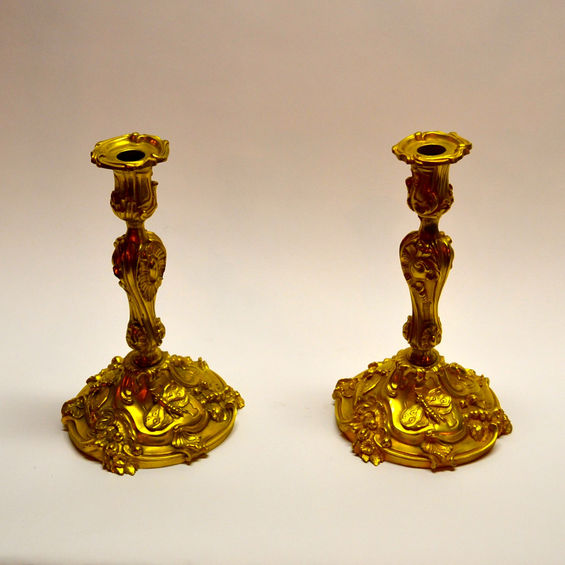 Pair of Antique French Bronze D'ore Candlesticks c. 1890